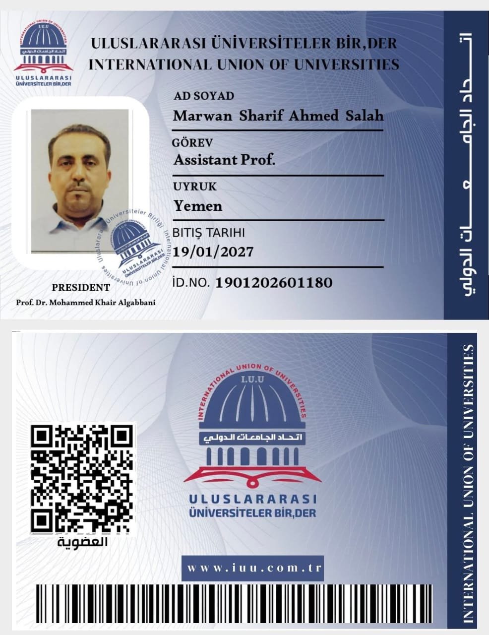 يبارك الاتحاد للدكتور مروان شريف أحمد صلاح / اليمن