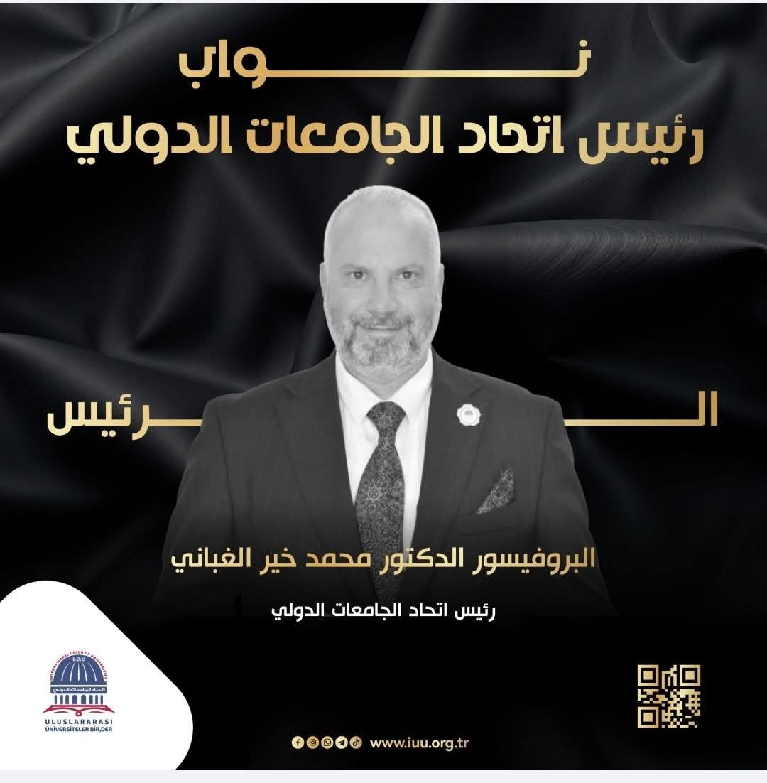 اتحاد الجامعات الدولي يعلنتشكيلة رئاسة الاتحاد ونوّابه لعام 2026منحو قيادة أكاديمية فاعلة وشراكات دولية أوسع.البروفسور الدكتور محمد خير الغباني الحسينيرئيس International Union of Universities – اتحاد الجامعات الدولي.….