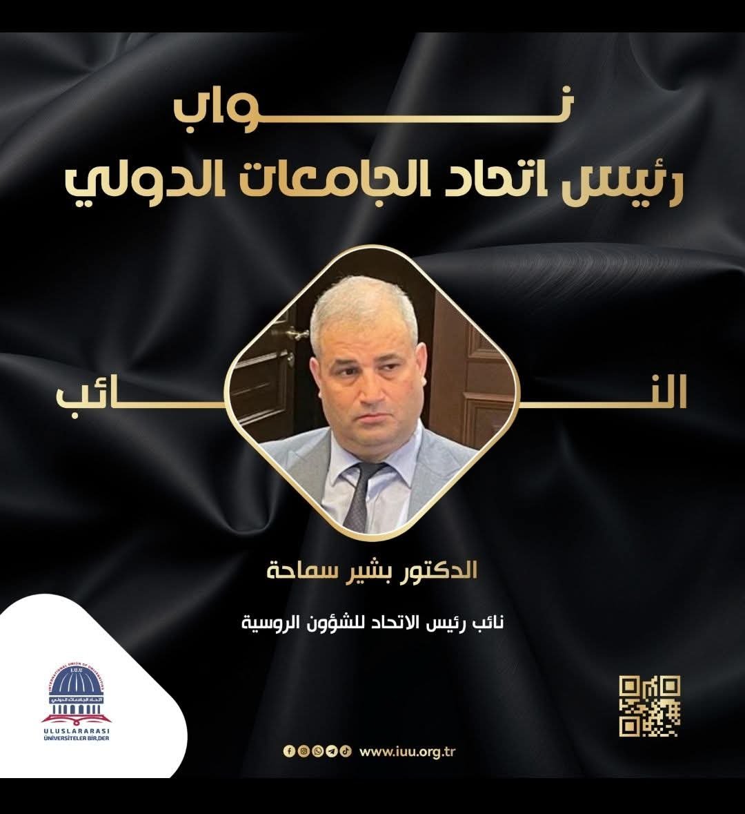 الدكتور بشير سماحة نائب رئيس International Union of Universities – اتحاد الجامعات الدوليللشؤون الروسيةضمن التشكيلة الجديدة لرئاسة الاتحاد لعام 2026.…….